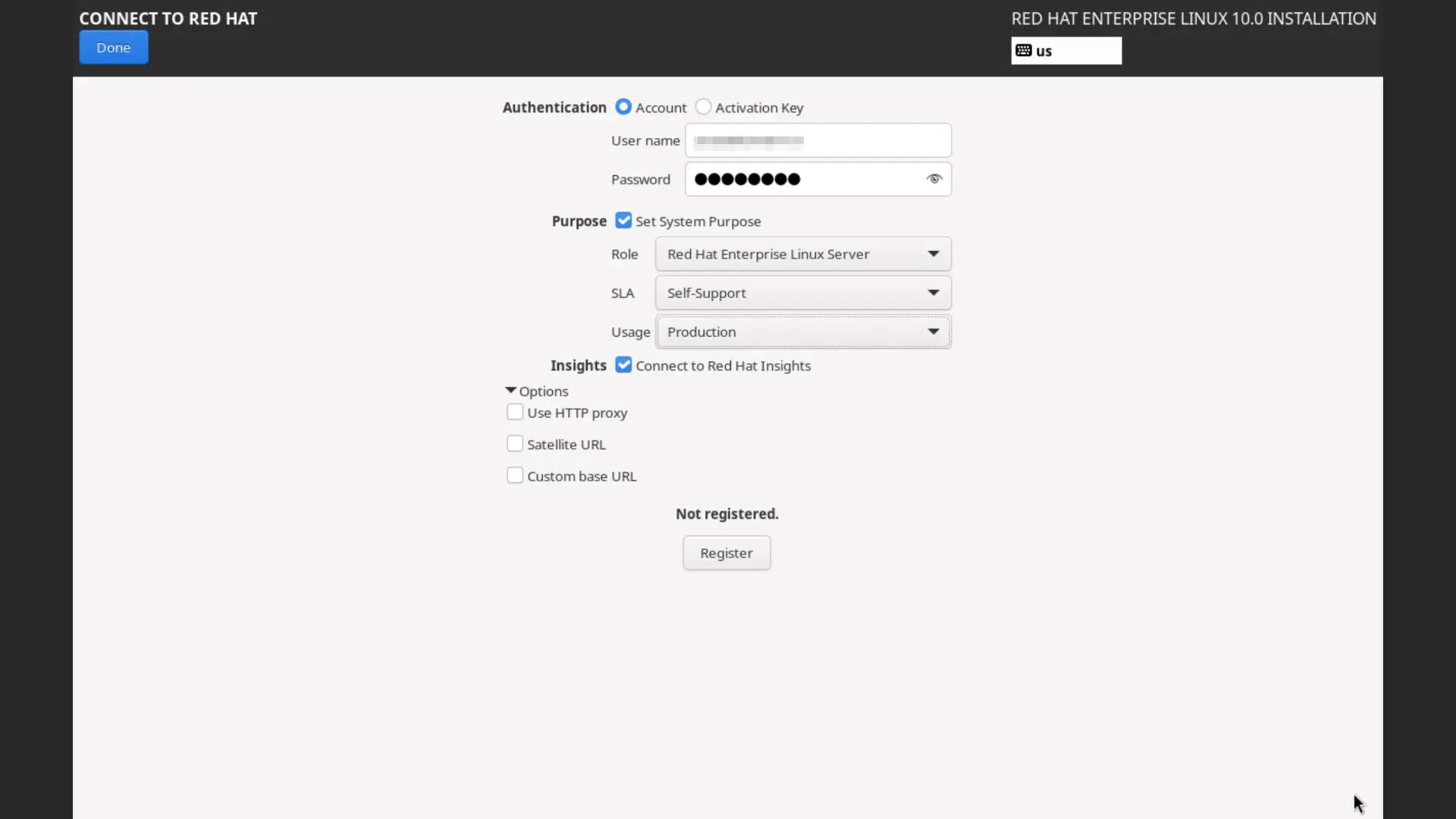 - Connect to Red Hat: Registering system with Red Hat for access to official repositories, security patches, and other resources necessary